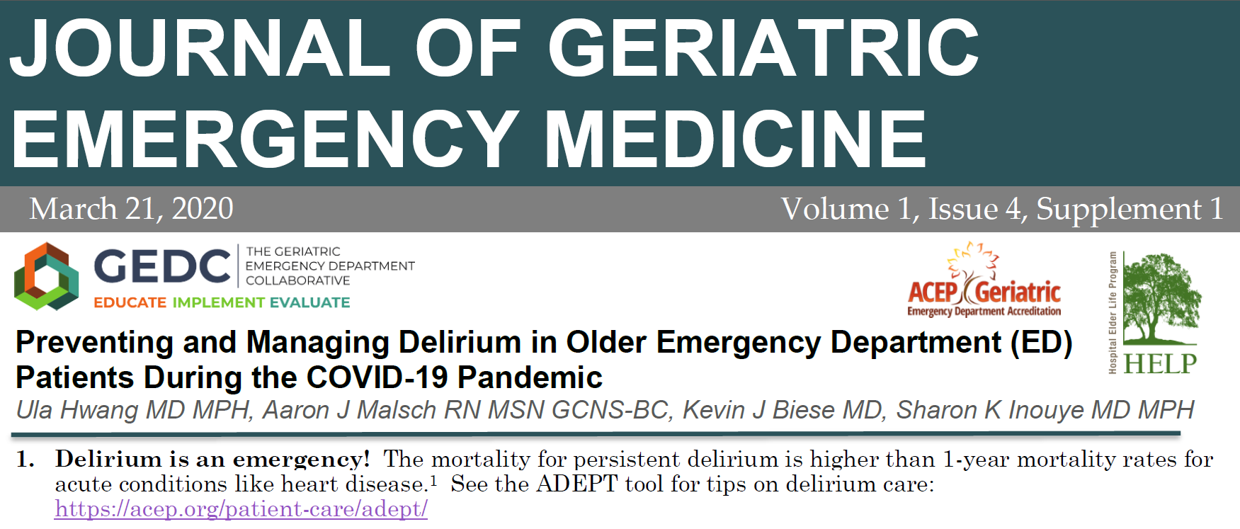 Managing delirium in older ED patients during the COVID-19 pandemic. A resource from the Geriatric Emergency Department Collaborative