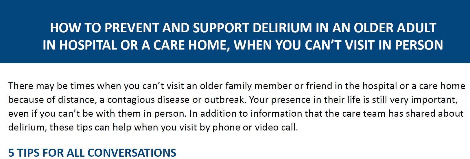 How to prevent and support Delirium in an Older Adult in hospital or a care home, when you can't visit in person.