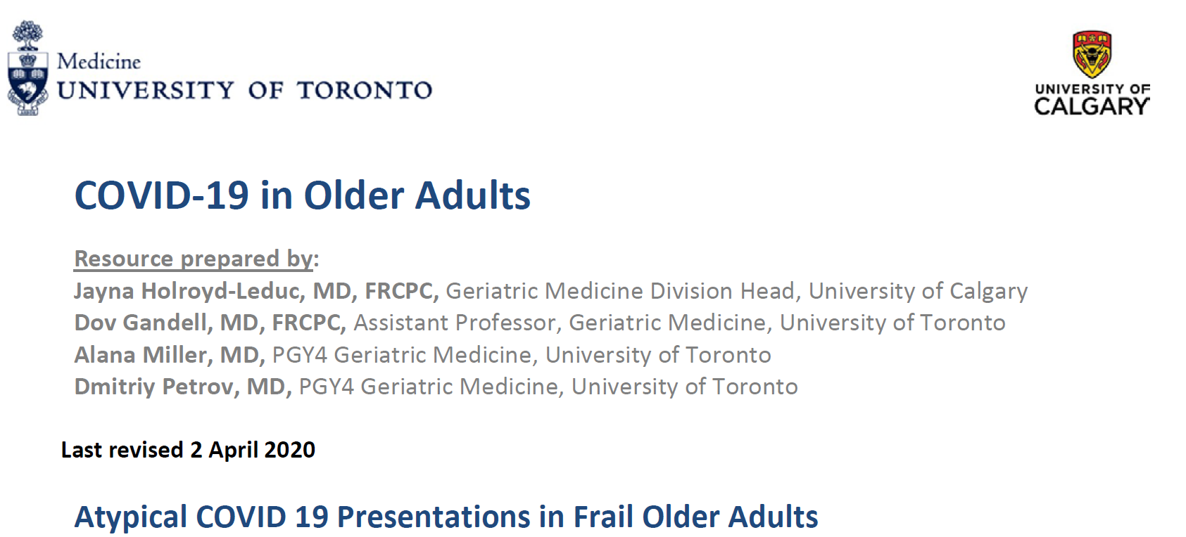 | Atypical COVID 19 Presentations in Frail Older Adults |