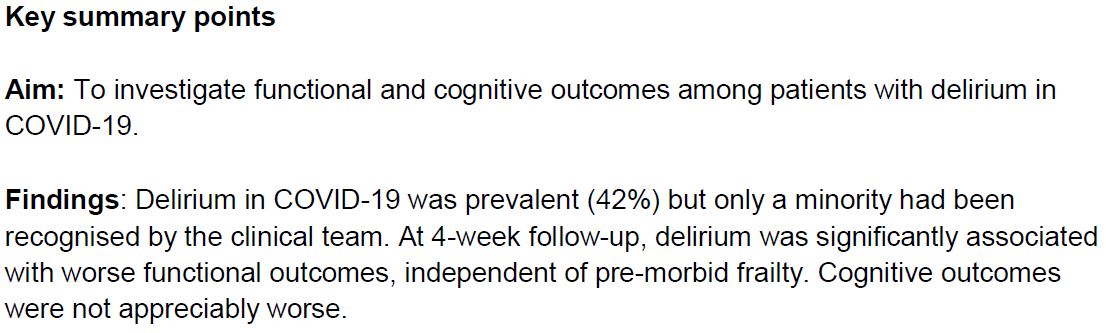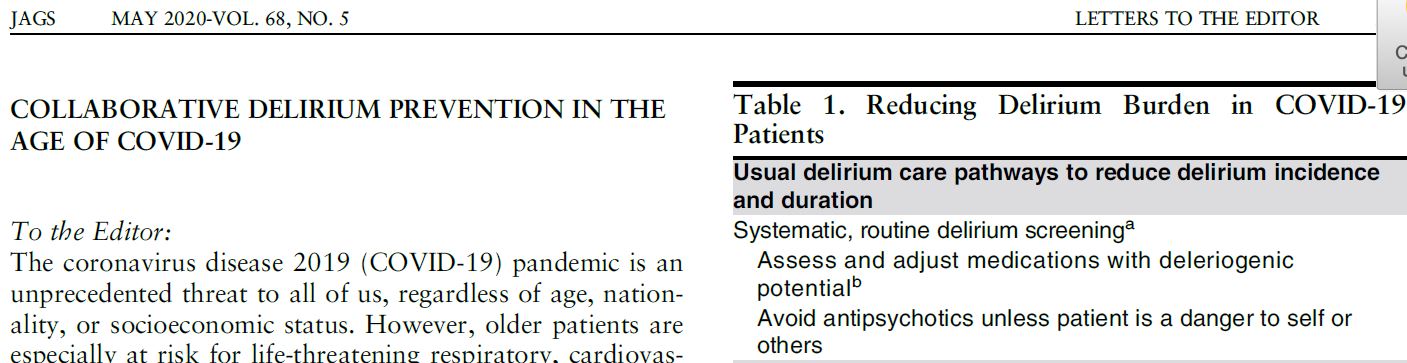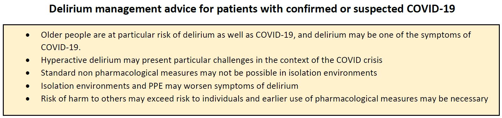 Coronavirus:Managing Delirium in Confimred and suspected cases