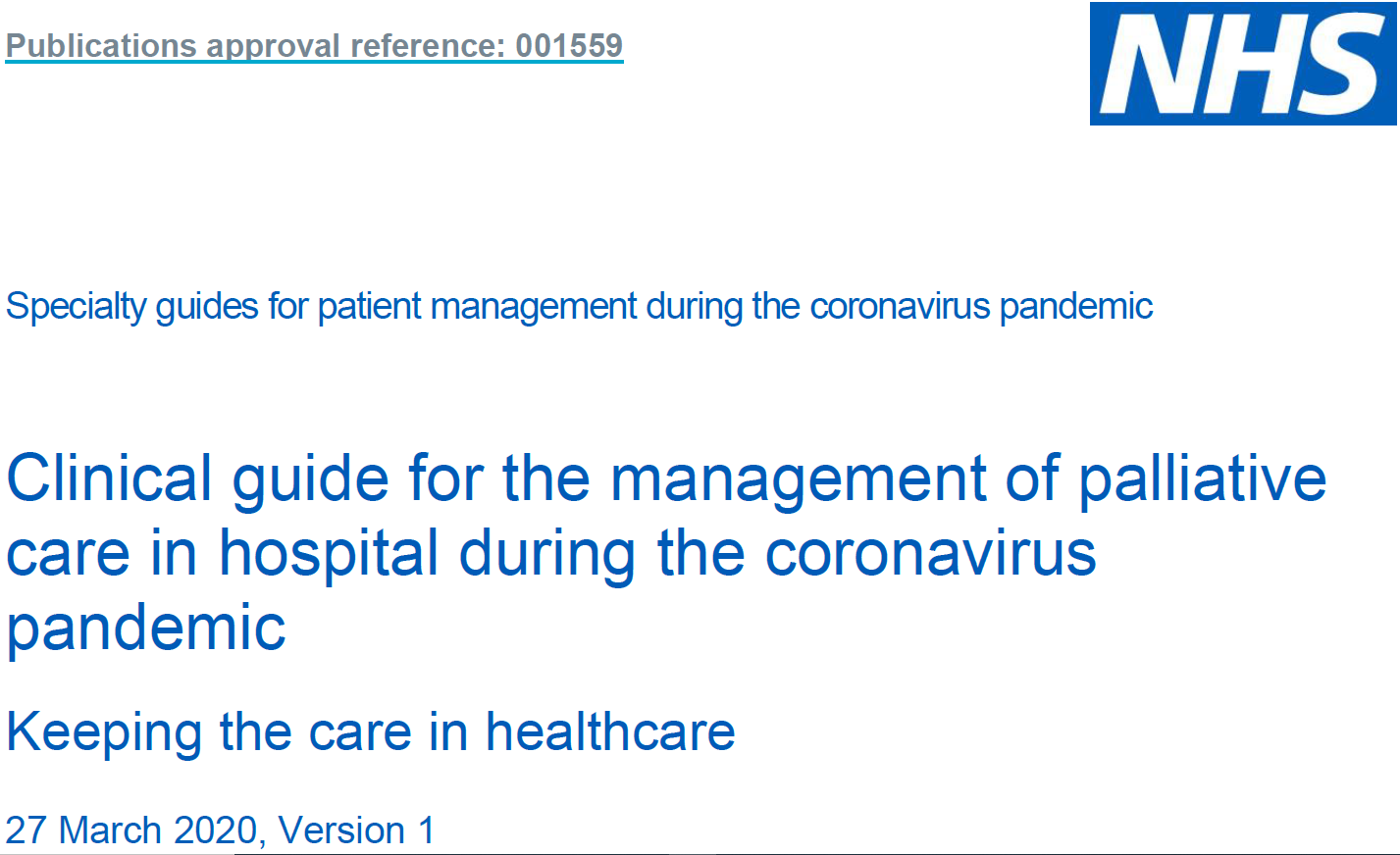 Clinical guide for the management of palliative care in hospital during the coronavirus pandemic. Keeping healthcare safe